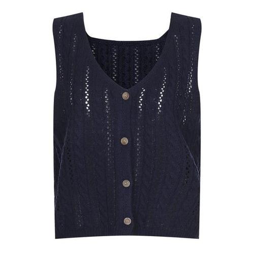[샵앤]국산 여성 Y단추 오픈 꽈배기 뜨개 펀칭 니트 조끼 BOM-WVS-21208-네이비