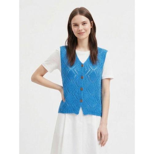 [샵앤]국산 여성 V넥 단추오픈 뜨개 다이아 펀칭 니트 조끼 BOM-WVS-21210-블루
