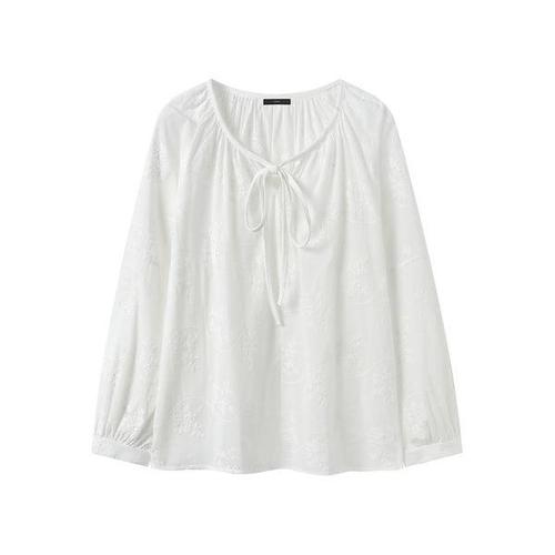 [르샵]레이스넥 리본 미니 자수 블라우스 (DQ2BA008A)