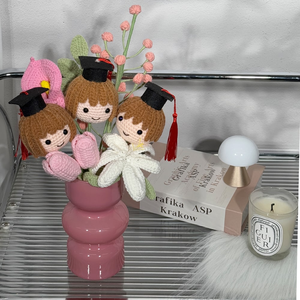 뜨개여아(학사모) 니트꽃 조화 장식 꽃다발 조화 꽃
