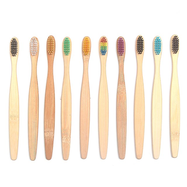 10Pcs 대나무 칫솔 친환경 나무 칫솔 부드러운 강모 팁 숯 성인 구강 케어 칫솔 호텔 여행