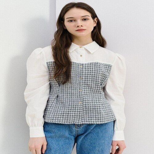 [더아이잗]트위드 배색 블라우스 IP4POBL081_CC