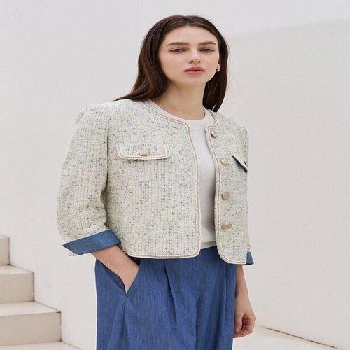 [더아이잗]하프 슬리브 메탈 트위드 재킷 IN4POJK50_CC