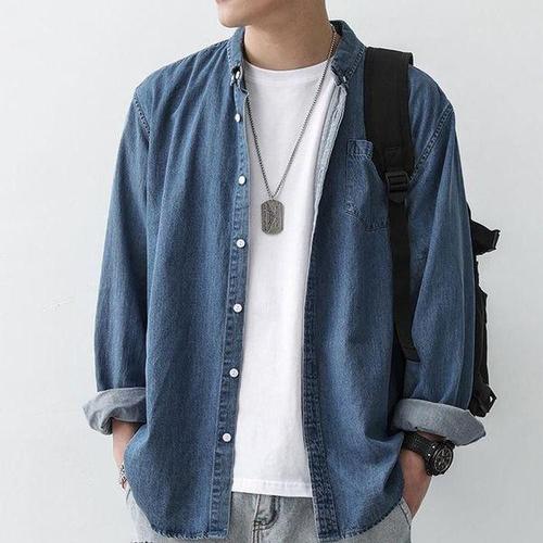 남성 캐주얼 데님 셔츠 루즈핏 베이직 긴팔 청남방