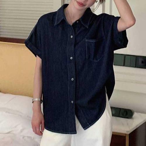 [에이치플러스몰]여름 데일리 루즈핏 반팔 데님 셔츠 워싱 연청 남방