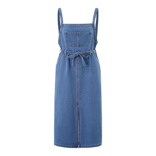 [무드무드] 니보라 데님 뒷트임 멜빵 롱 원피스