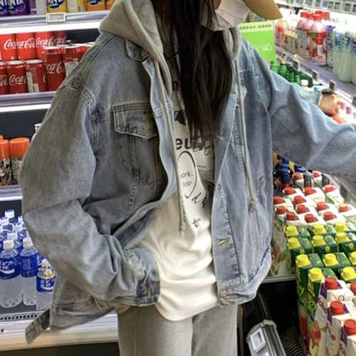 슈팅스타 / 루즈핏 후드넥 보이핏 간절기 아우터 데님 청자켓