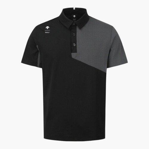 [데상트골프]M 데상트골프반팔티 GQC DQ22MFTS49-BLKG 남성 컬러블럭 변형 에리 반팔 티셔츠 / BLACK