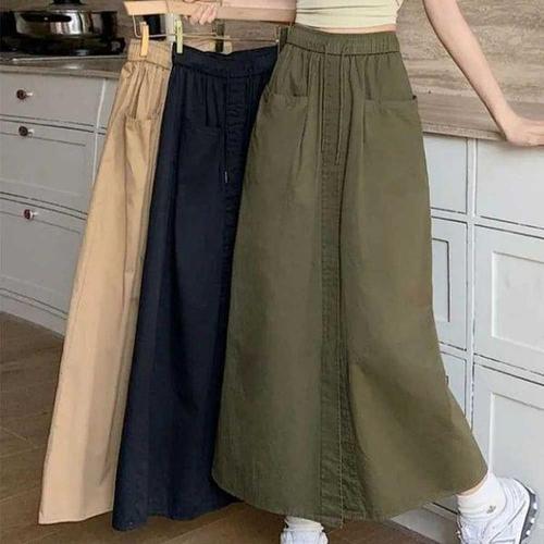 [에이치플러스몰]와이드핏 롱 카고 스커트 여성 데일리 편안한 치마