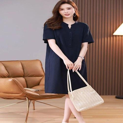 [에이치플러스몰]린넨원피스 셔츠 반팔 롱원피스 여름 루즈핏 데일리