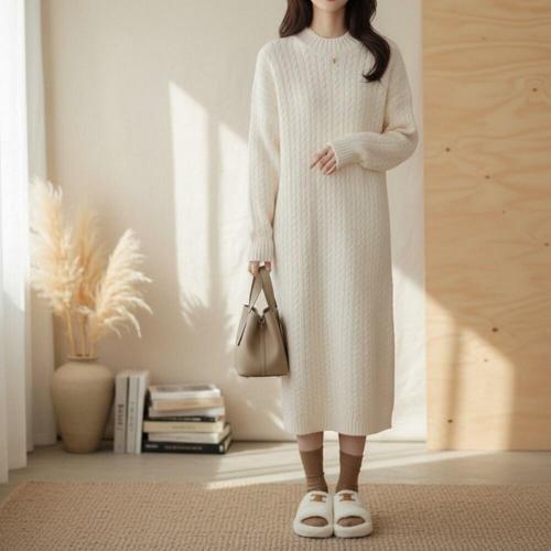 [옷자락]여성 따뜻한 데일리 롱 니트 원피스