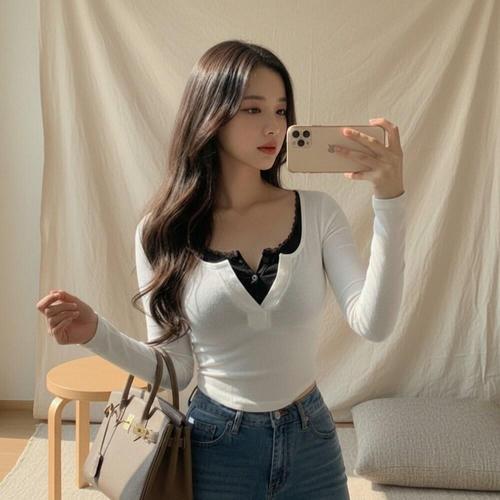 [다잇템]여성 여성스러운 레이스 롱슬리브 데일리룩