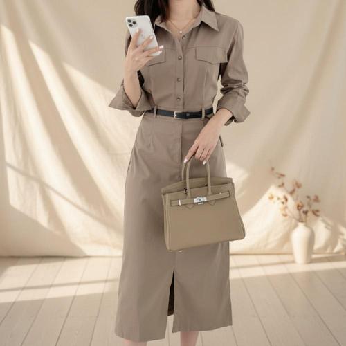 [옷자락] 여성 우아한 슬림핏 셔츠 원피스 하객 데일리룩