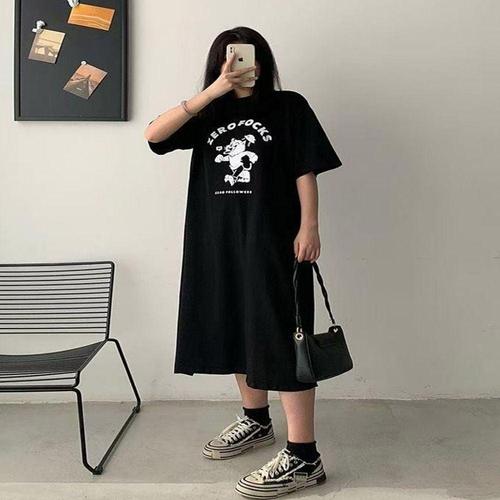 여자오버핏 라운드넥 반팔 캐주얼프린팅 데일리원피스 여름원피스
