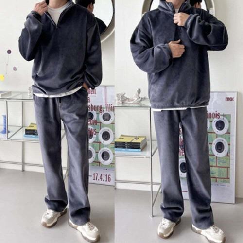[셀럽하우스]데일리 GBMR0716 기모안감 남자 반집업 골덴 와이드 상하세트