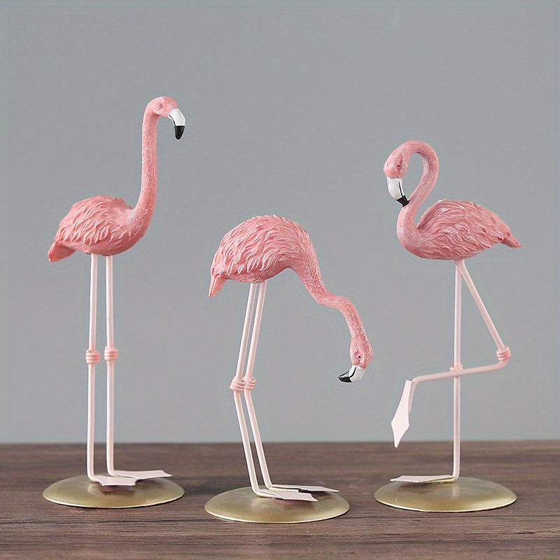 TEMU 거실, 침실, 사무실 데스크탑용 3피스 플라밍고 장식, 창의적인 소녀의 마음 레진 공예