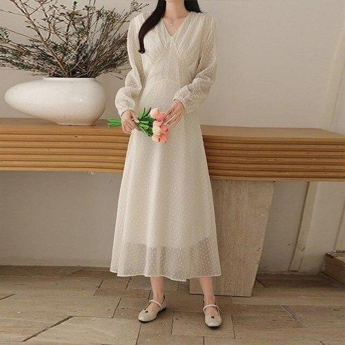 떳다그녀 리프 도트 롱 원피스