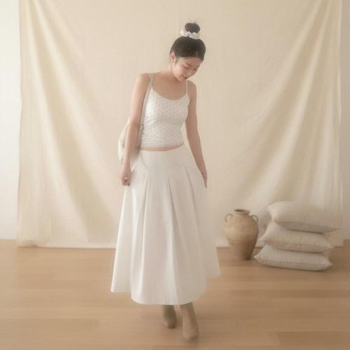 퍼레이드 도트 패턴 프릴 캉캉 A라인 샤 밴딩 롱스커트 (2color)