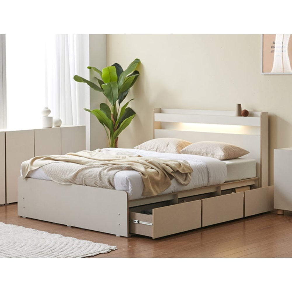 [가구야] 샌디 LED+USB 40T깔판형/3칸서랍형 침대 (슈퍼/퀸)