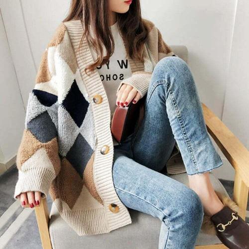 [셀럽하우스]카디건 HKIA1244 다이아 마름모 두꺼운 가디건 외투 루즈핏