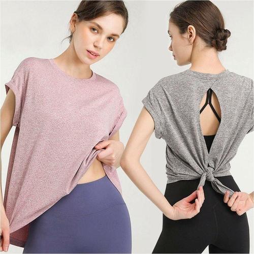 여성요가복 반팔티 뒤트임 여름 운동복 필라테스 상의 2색 WFJZX4N