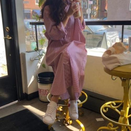 [옷자락] 여성 일상복 캐주얼 외출 루즈핏 줄무늬 롱드레스