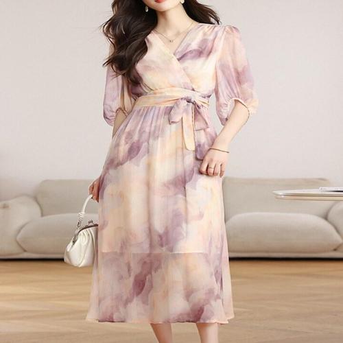 [오너클랜]인기상품 여름용 플로럴 쉬폰 드레스 하객 출근 사무실 원피스 [WFLL87R_260304]