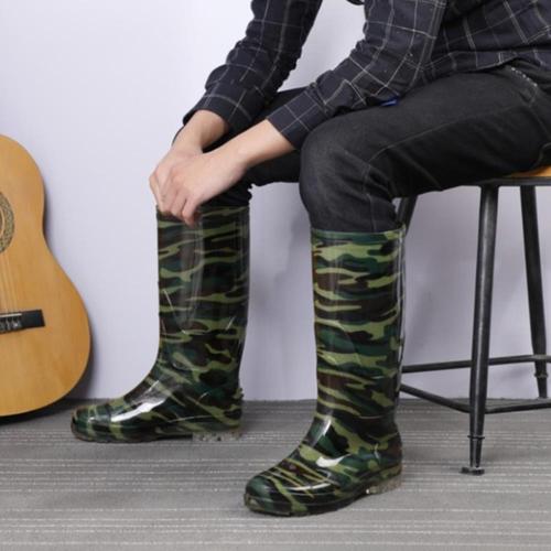 쇼웨이브 남성용 비옷 장화 탐험용 고무장화 종아리 높이 방수 절연 진흙 부츠 야외 신발 등산 원예 농사