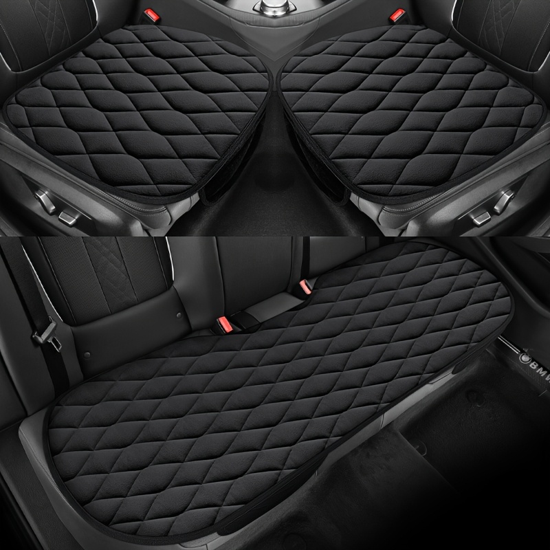 TEMU 자동차 시트 쿠션 3종 세트, 대형 마름모꼴 퀼팅 스티치 디자인, 플러시 패브릭 시트 커버, 편안하고 부드러움, 정교한 디자인, 간편한 설치, 다양한 차종에 적합, 사계절용