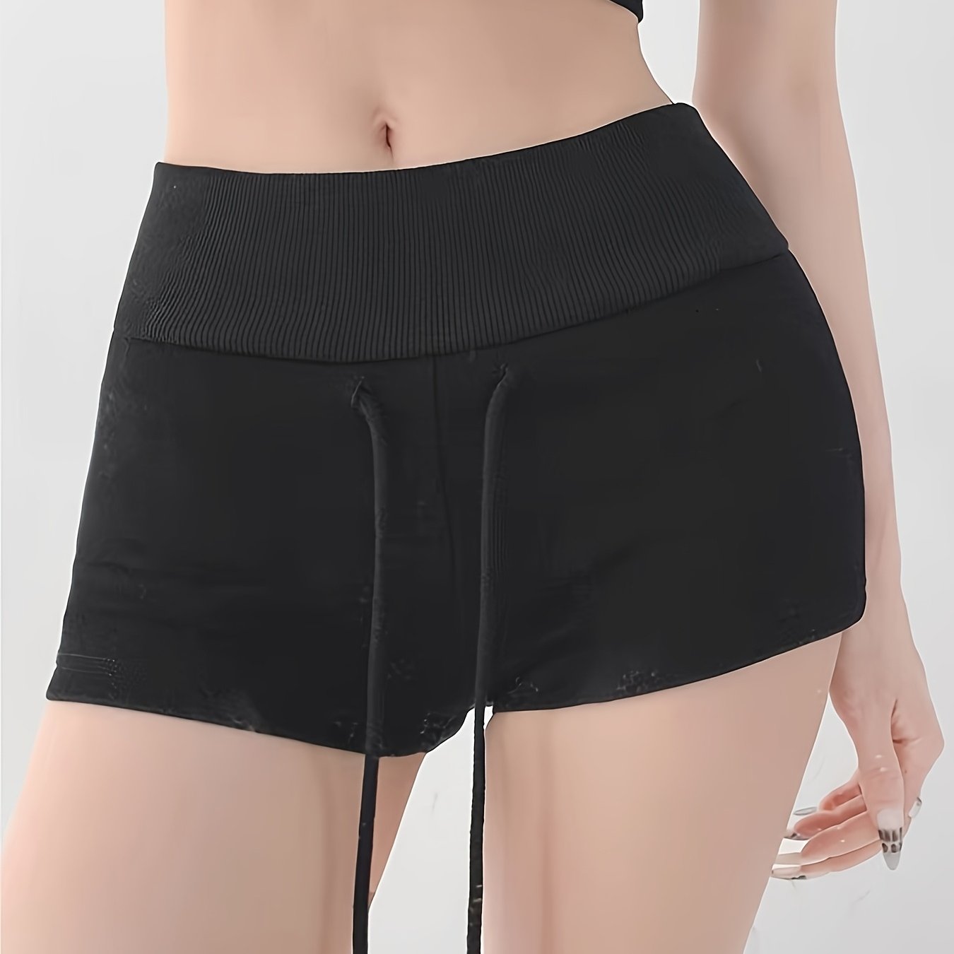 TEMU 여성용 하이웨이스트 골지 반바지, 드로스트링 디자인, 힙업 핫팬츠, 봄 여름 신상 스타일, 골지 접이식, Y2K 패션 의상
