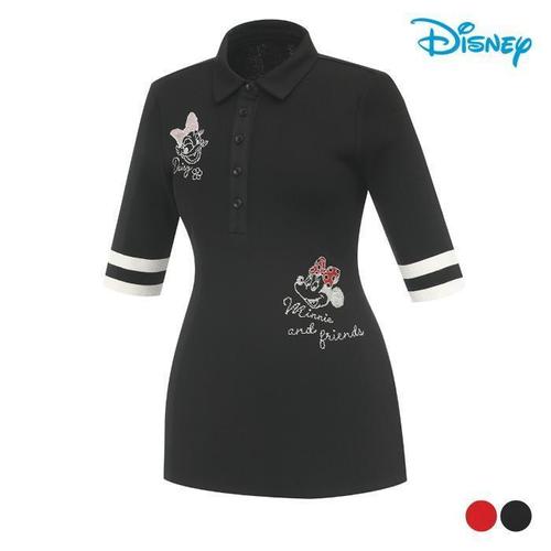 [디즈니골프]여성 배색 시보리 아트웍 긴팔 카라 티셔츠 DP1LTS004