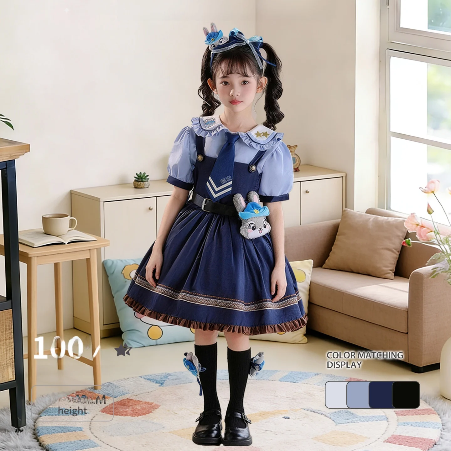 디즈니 주디 토끼 장교 코스프레 드레스 세트 소녀 드레스 모자 공주 스커트 아동 의류 민족 무대 의상