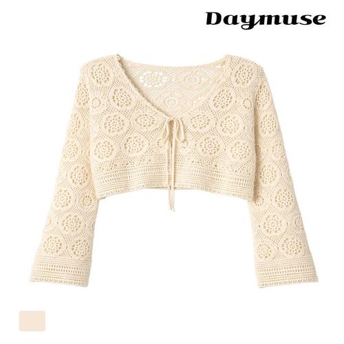 [하프클럽/샵앤]여성 Y오픈 레이스 뜨개 레이어드 펀칭 긴팔 가디건 MSE-WCD-21