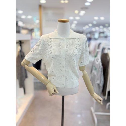 슈팅스타 / 캐주얼 뜨개짜임 펀칭 카라넥 반팔 니트 가디건 셔츠