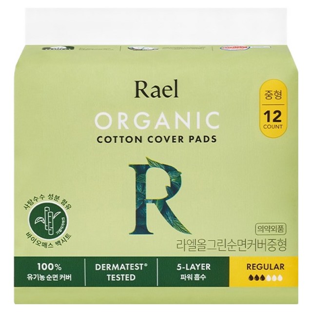 라엘 무표백 순면커버 생리대 중형 12팩