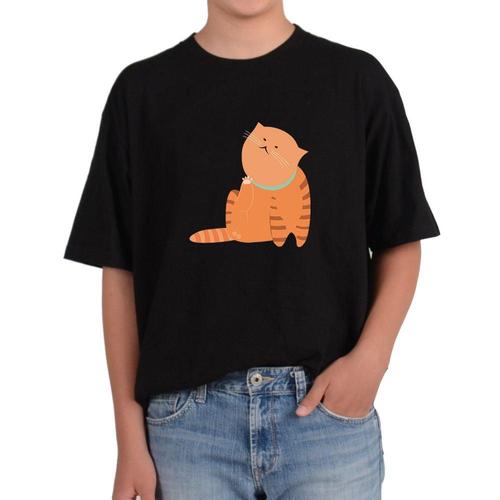 반팔라운드 고양이 목걸이 간지럼 그림 전사이즈 WFIX5F1