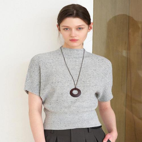 [GGPX]라운드넥 골지 목걸이 세트 반팔 니트 (GQBKT013D)