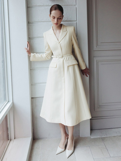 [비에이유 바이 브라이드앤유] AGATHA Notched collar A-line dress (Black/Light butter)