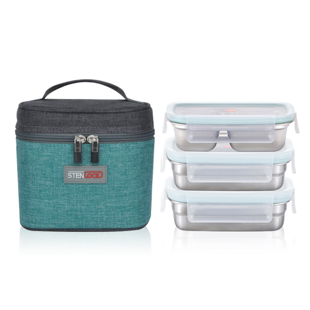 국산 스텐 도시락통 세트 런치백 가방포함 직사각 소-3단