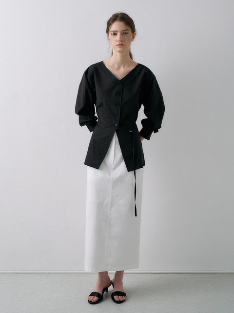 [라메레이] 링클 하이넥 캡 슬리브 블라우스