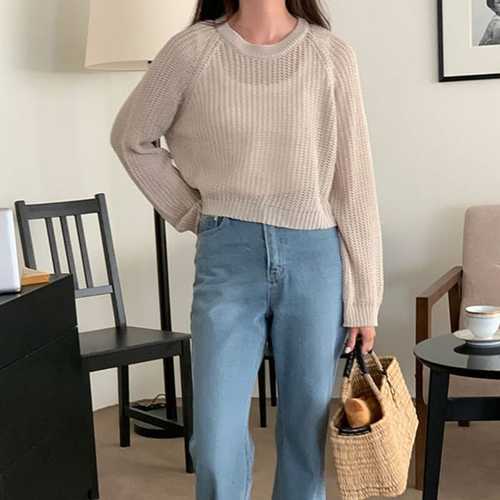 슈팅스타 / 여름 하찌팝 짱짱 시스루 d이너 니트 긴팔 티셔츠