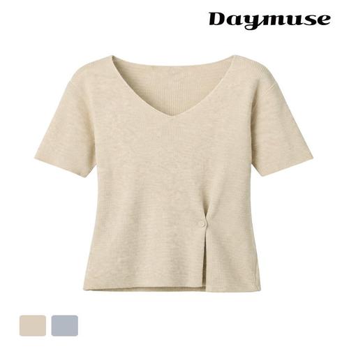 [모어오브](N) 카라멜 랩 반팔 니트 버튼 골지 탑