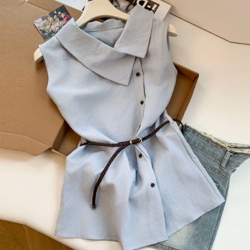 [블랙퀸] 랩카라 민소매 블라우스 blk004663
