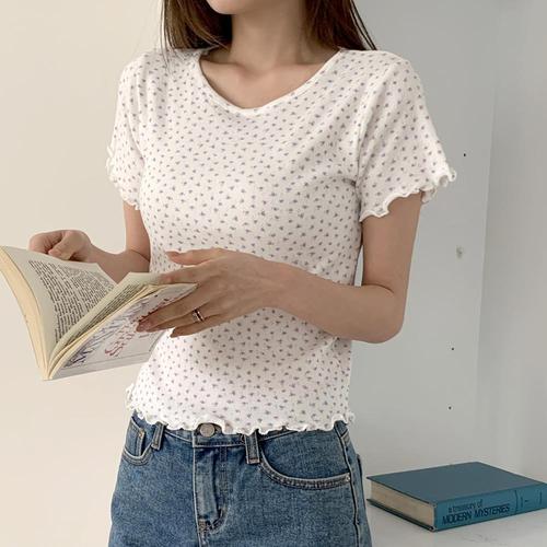 [옷자락] 여자 잔꽃 러블리 데일리 플라워 반팔티