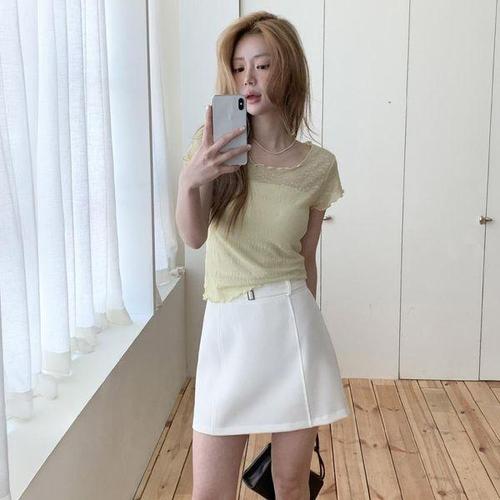 [신상오픈런]여성 벨트 장식 핀턱 없는 미니 스커트