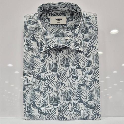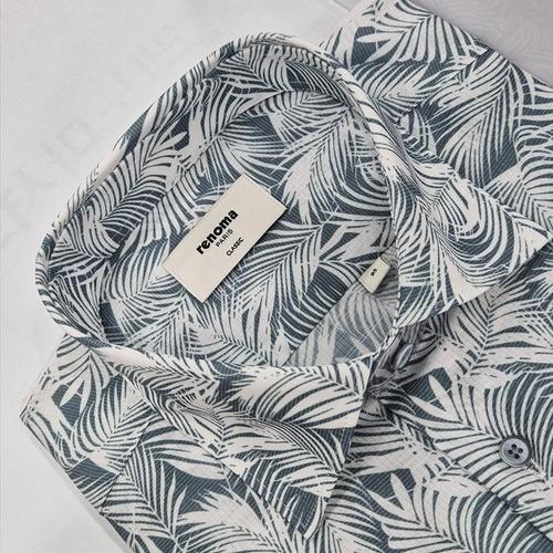 [레노마셔츠]반소매/일반핏/구김성 적은/빅리프 프린트 여름 반팔셔츠 RPUSG1273 GE_US