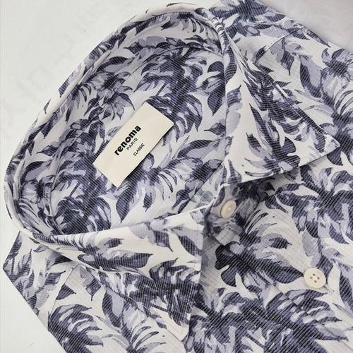 [레노마셔츠]일반핏/구김없는/폴리 서커 올오버 플라워프린트/지지미 반팔셔츠 RPUSG1276 NY_US