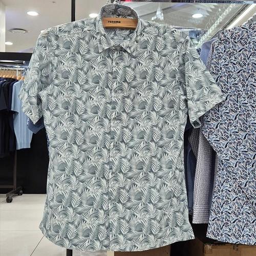 [레노마셔츠]일반핏/반소매/구김성 적은/빅리프 프린트 여름 반팔셔츠 RPUSG1273 GE_US