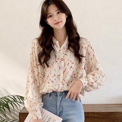 [패션시그널] 레드체리프릴카라블라우스 FS2302762