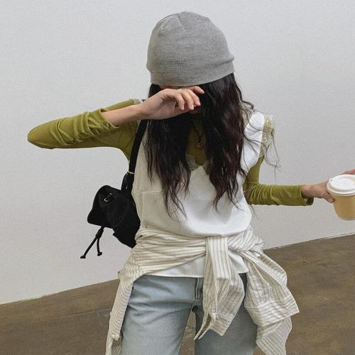 [유야]여성 캡내장 레이어드 레이스 골지 끈 나시 -FSL0055- 봄 여름